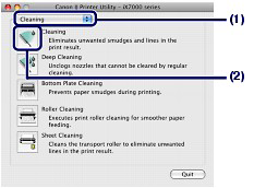 (1) Make sure that Cleaning is selected in the pop-up menu.