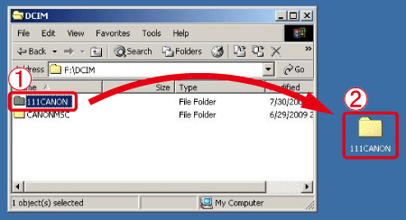 open the [xxxCANON] folder, and select the image file that you want to copy, and then move the file to a folder to copy.