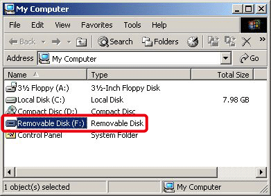 Open [Removable Disk]. (In this case, [Removable Disk (F:)] is used as an example.)