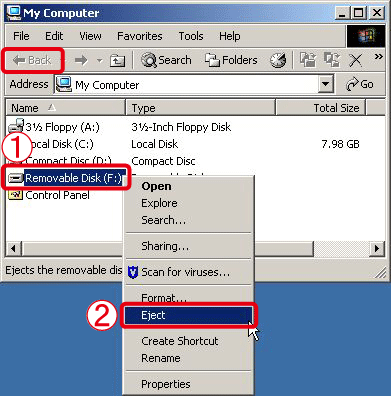 8. After copying is completed, click [Back] several times to display the [My Computer] screen in Step 5.