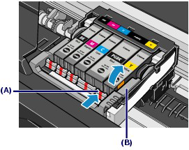 Push the tab (A) and lift the ink tank to remove.