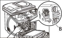 Do not touch the high-voltage contact (A) or the electrical contacts (B), as this may result in damage to the printer.