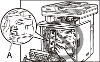 - When installing or removing the toner cartridges, be sure to place paper on the transfer belt (A) of the delivery feeder unit to protect the belt.