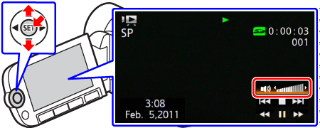 > toward until the volume bars disappear.- If the STV-250N Stereo Video Cable is connected to the camcorder, disconnect it.