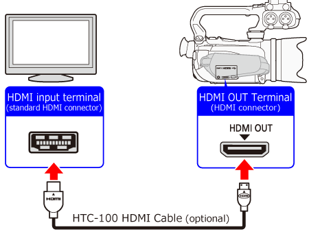 The HDMI ( High-Definition Multimedia Interface ) connection is a convenient all-digital connection using a single cable for both video and audio. When you connect the camcorder to an HDTV equipped with an HDMI terminal, you can enjoy video and audio playback at the highest quality.
