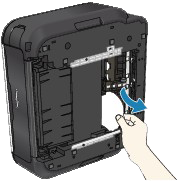 Before removing the jammed paper, Refer to [ Paper Is Jammed inside the Machine at the Transport Unit ] within this webpage to remove it from transport unit. If the paper jam error continues, remove the jammed paper following the procedure below.