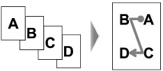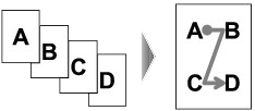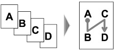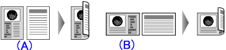 - This function can be used in combination with Two-sided copy. If you use this function in combination, you can copy four original pages on one sheet of paper. In this case, two original pages are copied on each side of paper. If you use this function in combination, select the two-sided copy setting for 2-sided and the stapling side of print paper on the Print settings screen.