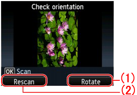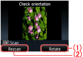 When you are using the preview screen, the screen below is displayed so that you can check the orientation.