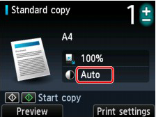 Specify the intensity. When Auto is selected, the intensity is adjusted automatically according to the originals loaded on the platen glass. Auto is displayed on the Copy standby screen.