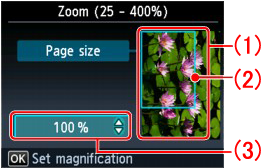 The magnification setting, which was set when the preview screen was displayed, is displayed. If the setting other than Fit to page is selected, you can change the magnification setting using the