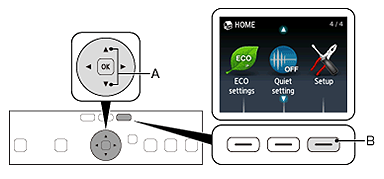 Touch the HOME button (A) on the printer.