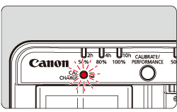 If the <CAL/CHARGE> lamp blinks red as shown in the image below, performing calibration is recommended.