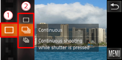 ) icon is displayed on the upper-left part of the screen, the setting is completed.As long as you hold the <shutter button> down, the camera will shoot successive images.