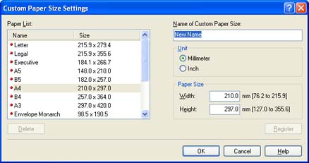 In Windows 98/Me, up to 30 custom paper sizes can be added. In Windows 2000/XP/Server 2003/Vista, the number depends on your system environment.