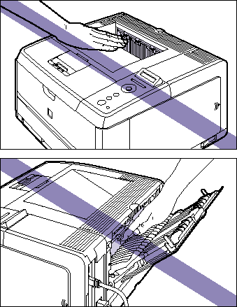 g. The surroundings of the face-down output tray and face-up output tray are hot during printing or immediately after printing. When taking out of the paper or removing jammed paper, be careful not to touch the surroundings of the face-down output tray or face-up output tray.