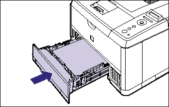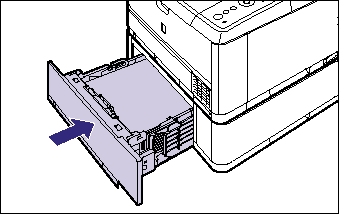 Push the paper cassette into the printer firmly until the front side of the paper cassette is flush with the front surface of the printer.