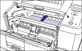 14. Remove any jammed paper by pulling it in the direction of the arrow.
