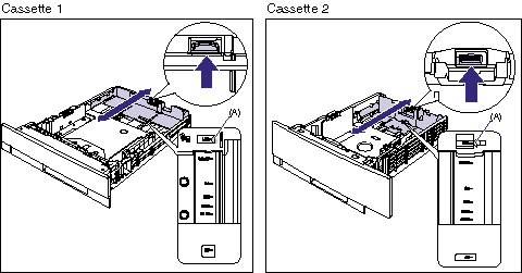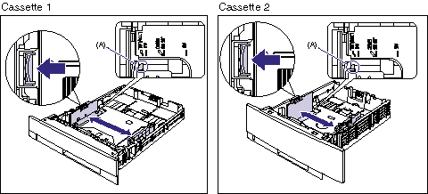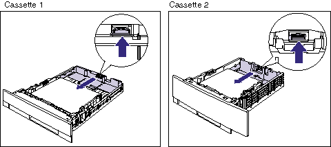 2. When changing the size of the paper to be loaded, adjust the length of the paper cassette and change the positions of the paper guides.