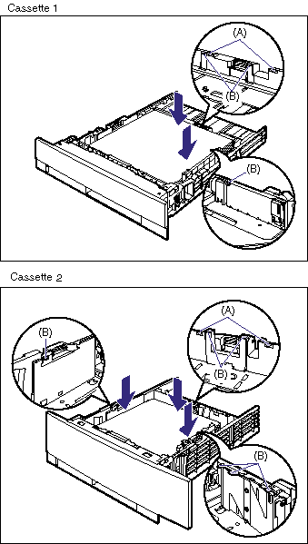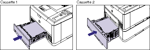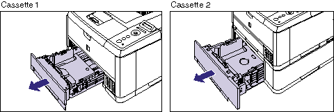 b. If you are printing from Cassette 2, make sure that Cassette 1 is set before printing. If you print from Cassette 2 when Cassette 1 is not set, this will cause paper jams.