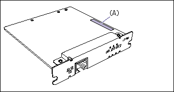 The MAC address is indicated on the network board (A) as shown in the following figure.