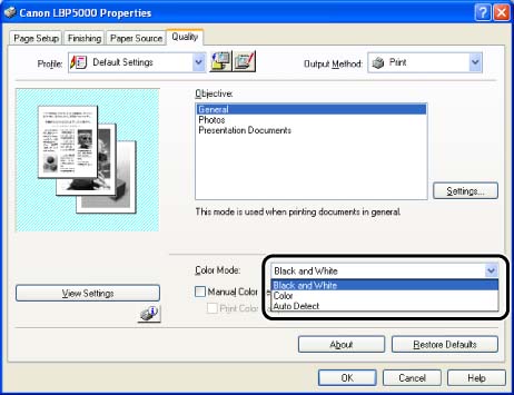 When [Paper Type] in the [Paper Source] sheet is set to [Transparency], [Color Mode] is grayed out and cannot be selected.