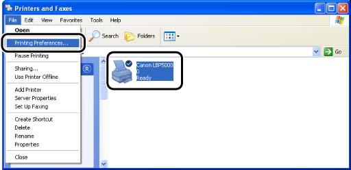 2. Select the icon for this printer, then select [Printing Preferences] from the [File] menu.