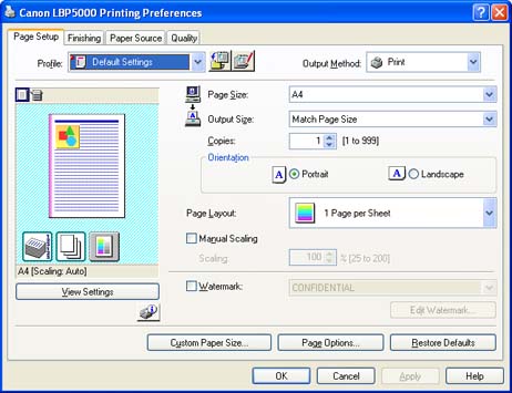 Displaying the [Document Properties] dialog box from the [Printers and Faxes] folder or the [Printers] folder (Windows 2000/XP/Server 2003)