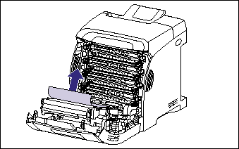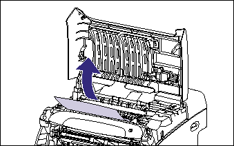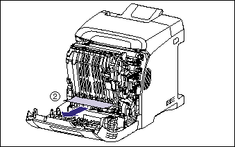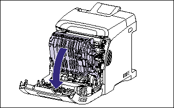 a. Remove jammed paper while the power of the printer is ON. If the power is turned OFF, the data being printed will be deleted. When you remove the fixing unit to remove jammed paper, however, the data being printed will be deleted because you have to turn the printer OFF.