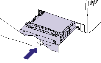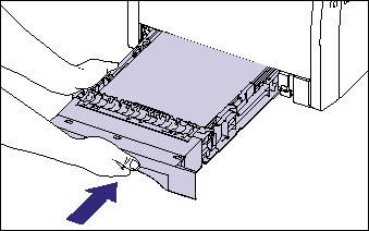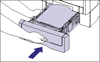 Push the paper cassette into the printer firmly until the front side of the cassette is flush with the front surface of the printer.