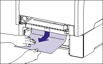 If the jammed paper cannot be removed easily, do not try to remove it forcefully but open the front cover, and then see Step 5 and remove the jammed paper. If you try to remove the jammed paper forcefully, the feed roller may come off.