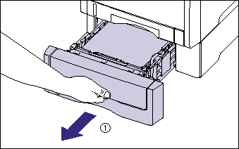 Pull out the paper cassette gently (1) .