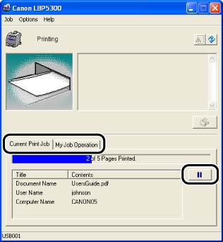Deleting/Pausing/Resuming a Print Job Using the Printer Status Window :