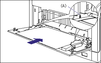 The multi-purpose tray can be loaded with up to the number of sheets listed below. Make sure that the paper stack does not exceed the load limit marks (A).