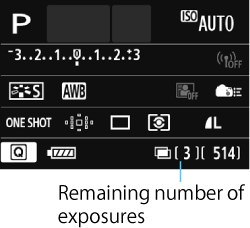 > icon will blink. - The number of remaining exposures is displayed in brackets [ ] in the viewfinder or on the screen.