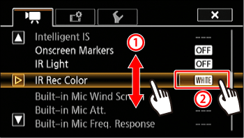 Drag your finger up and down bring [IR Rec Color] into the orange selection bar,