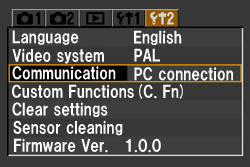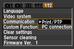 Use the following procedure to change the camera’s [Communication] to [Print/PTP].