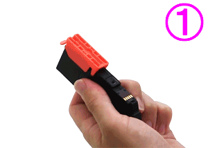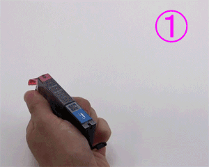 (1) Take a new ink tank out of its package, remove the orange tape (