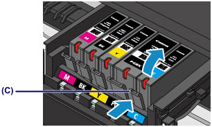 (2) Press on the top of the ink tank until the ink tank snaps firmly into place.