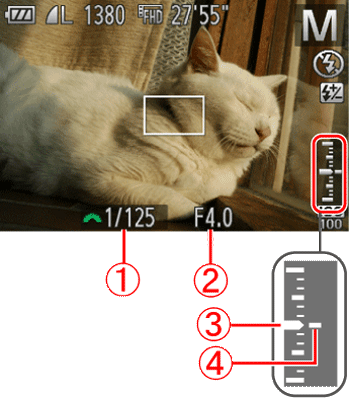 - An exposure level mark based on your specified value is shown on the exposure level indicator for comparison to the standard exposure level.