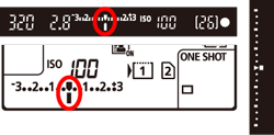 > switch to the right. - If the exposure compensation amount exceeds ±3 stops, the end of the exposure level indicator will display <