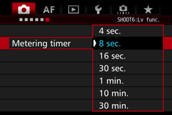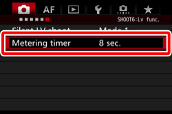 In Live View shooting, you can change how long the exposure setting is displayed (AE lock time).