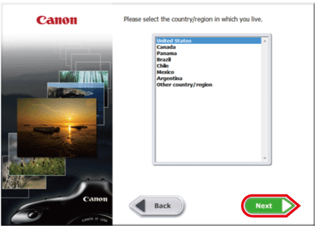 4. Select the country where you live, and then click [Next].