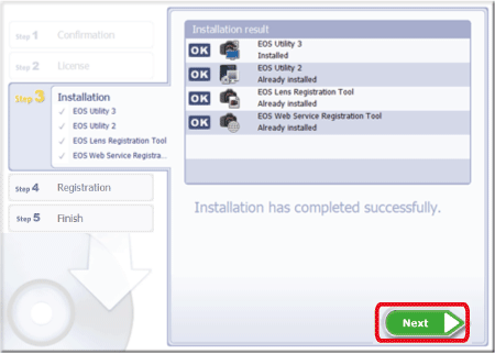 This completes the procedure for re-installing EOS Utility 3.x.