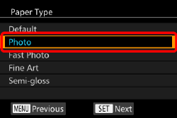 11. The screen for setting the paper type appears.