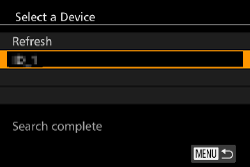 6. Once the printer is ready for the connection, the printer’s name will be displayed on the camera. Press the [