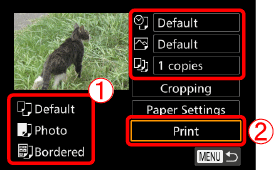 13. The camera returns to the print setting screen.