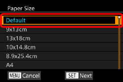 ] wheel to choose the paper size, then press the [