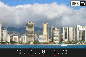 - You can also access the setting screen of step 4 by pressing the [ DISP.] button when the exposure compensation screen is displayed.