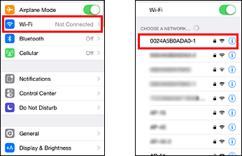 11. In the Wi-Fi setting screen of your external device such as a smartphone, select the SSID and enter the password (you wrote down in Steps 7 and 9) to complete the connection.