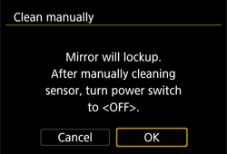 - If you use a battery, make sure it is fully recharged. If the battery grip with size-AA/LR6 batteries is attached, manual sensor cleaning will not be possible.
